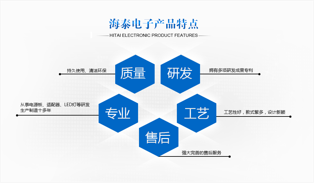 威海海泰电子有限公司成立于2003年(原威海双丰通讯设备有限公司),是一家致力于开关电源、LED电源、电源适配器、手机充电器、医疗电源等自主研发、生产和销售为一体的高新技术企业。公司秉承 “以顾客为中心”的宗旨,坚持“以人为本、质量至上 、节能降耗、清洁环保、持续改进 ”的质量和环境方针,科学高效的组织生产,不断的提高产品质量。先后通过了ISO9001质量管理体系认证、GJB9001C质量管理体系和GJB3001C质量管理体系和ISO14001环境管理体系认证。
